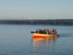 Eine runde Sache im Team; los geht es durch das warme Wasser des geschützten Gnadensees. An der Westspitze der Insel haben Sie einen hervorragenden Blick auf die Künstlerhalbinsel Höri und die Hegauvulkane. Am Mittag haben Sie die Möglichkeit, sich in einem gehobenen Restaurant auf der Insel zu stärken. Erholt paddeln Sie weiter an der Schweiz zugewandten Südufer der Gemüseinsel und schliessen die Kanutour mit der Unterfahrung des Inseldammes ab. Happy-Landing!